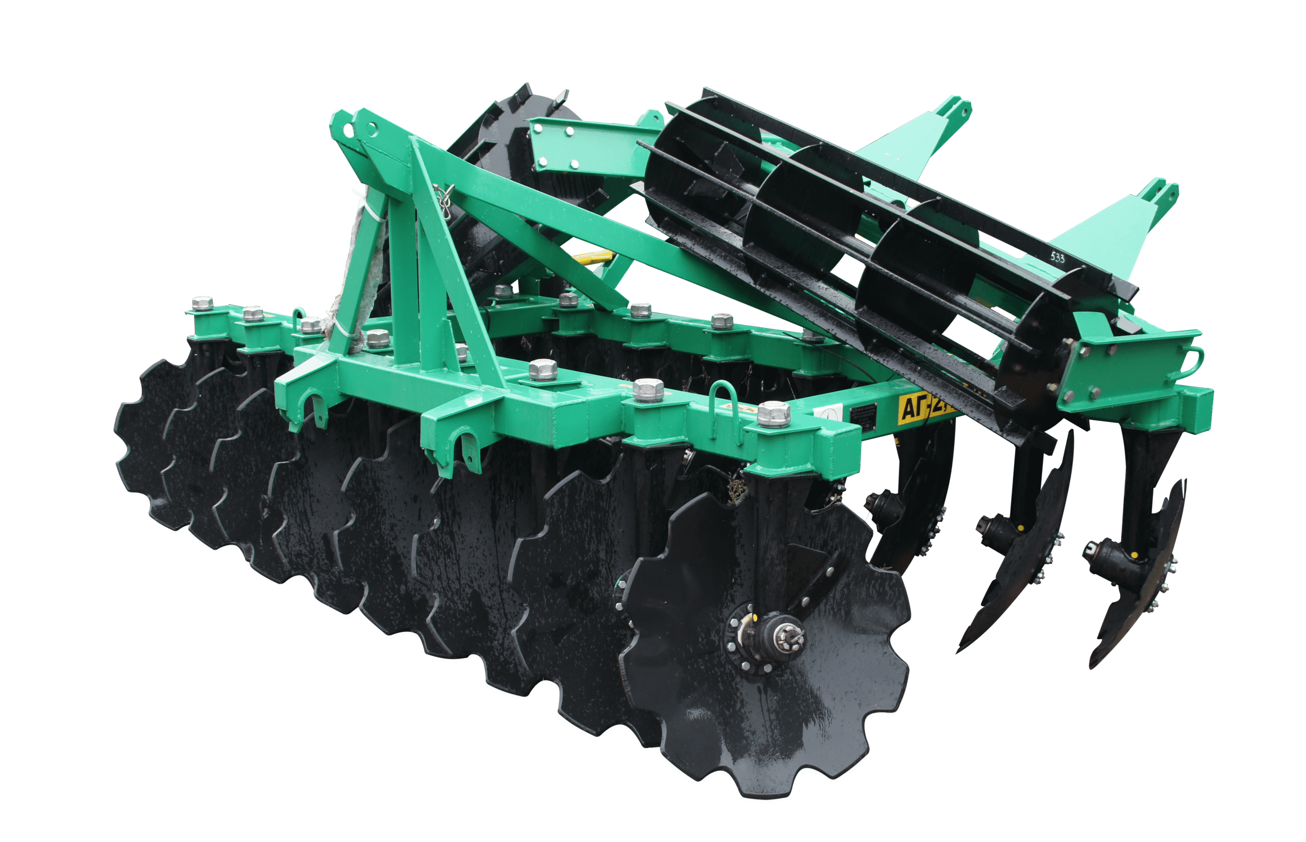 Дискова борона АГ-2,7 оснащена дисками і розроблена для ефективного обробітку ґрунту човниковим способом. Вона створює оптимальну природну структуру ґрунту, забезпечує рівномірне подрібнення рослинних залишків і розпушування верхнього шару. Завдяки цьому, ґрунт зберігає вологу, що особливо важливо для підвищення врожайності та покращення агротехнічних показників.
