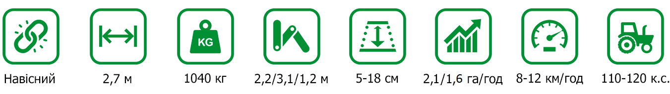Технічні характеристики дискової борони АГ-2,7 зі зворотними дисками