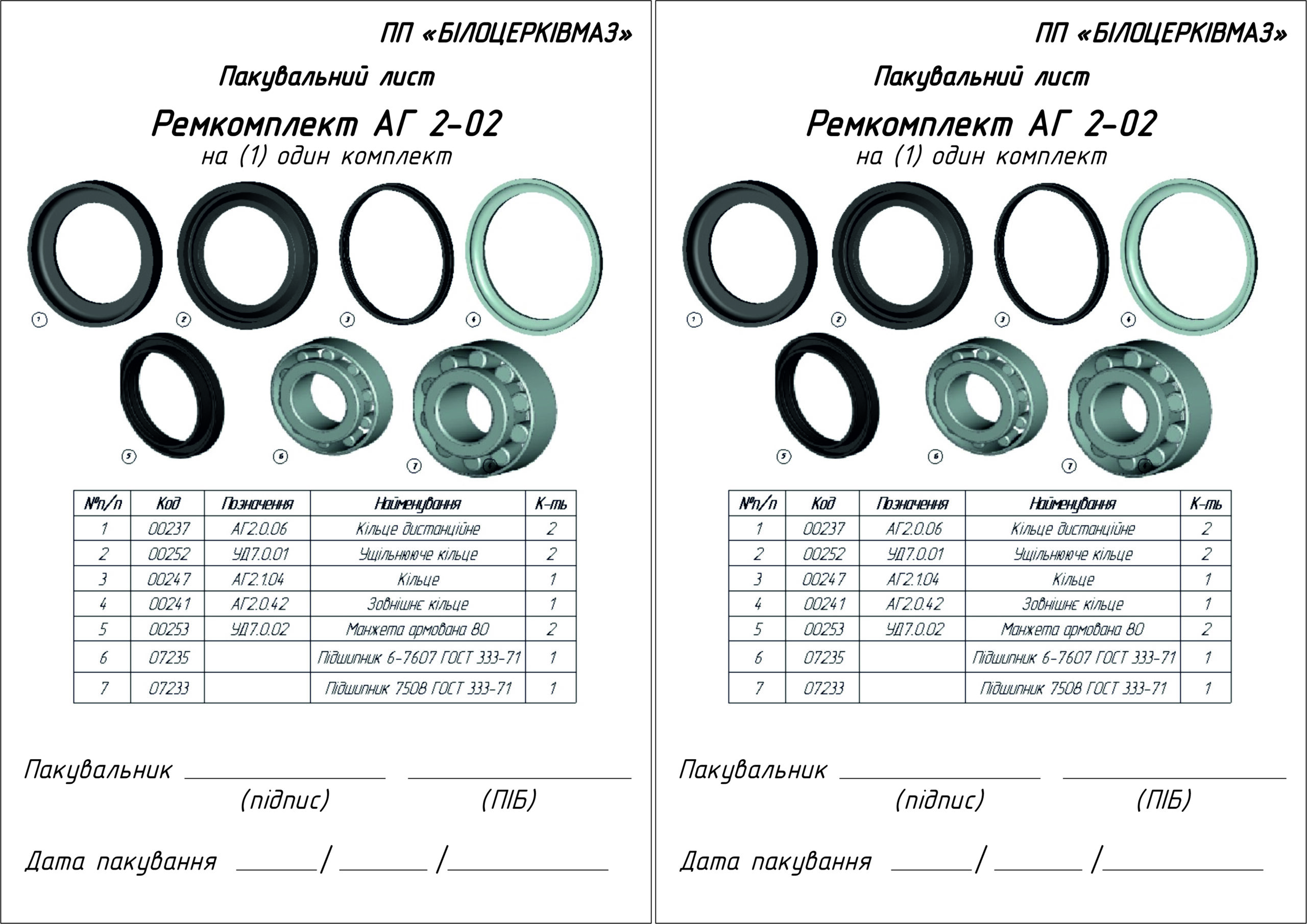 Ремкомплект АГ 2-02 — це професійний набір комплектуючих, призначений для повного відновлення підшипникового вузла стійки дискових борін серії АГ. Завдяки точній відповідності параметрам виробника та стандартам ГОСТ, комплект забезпечує правильне центрування, плавне обертання диска та захист підшипників від передчасного зношування.