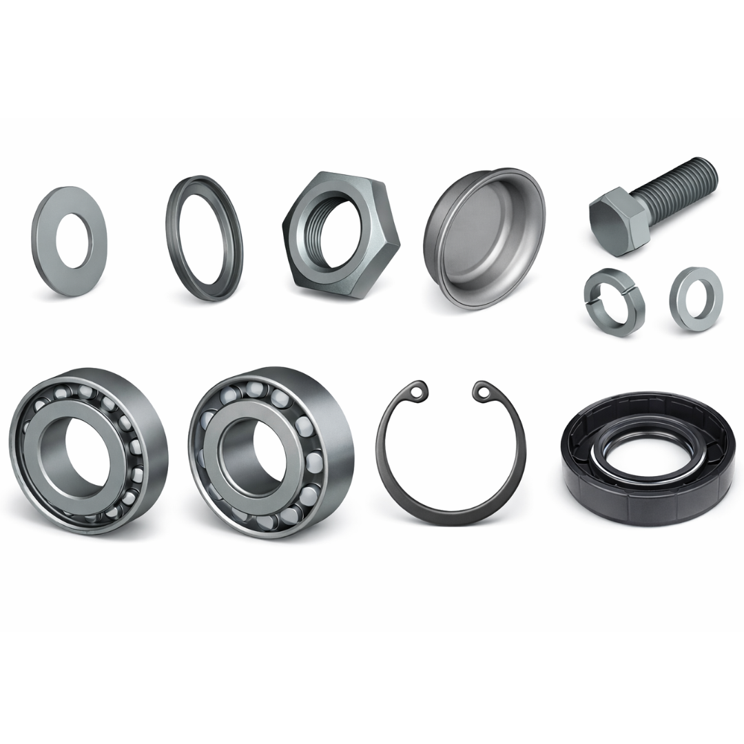 Це базовий набір комплектуючих для сервісного обслуговування маточини (ступиці) на важких дискових агрегатах з віссю серії К010. На відміну від розширених версій, цей комплект зосереджений на заміні підшипникової групи та основних елементів фіксації. Використання підшипників підвищеної вантажопідйомності (7508А та 7509А) разом із болтами найвищого класу міцності (10.9) робить цей вузол стійким до значних динамічних ударів при обробці цілини або сухих ґрунтів.