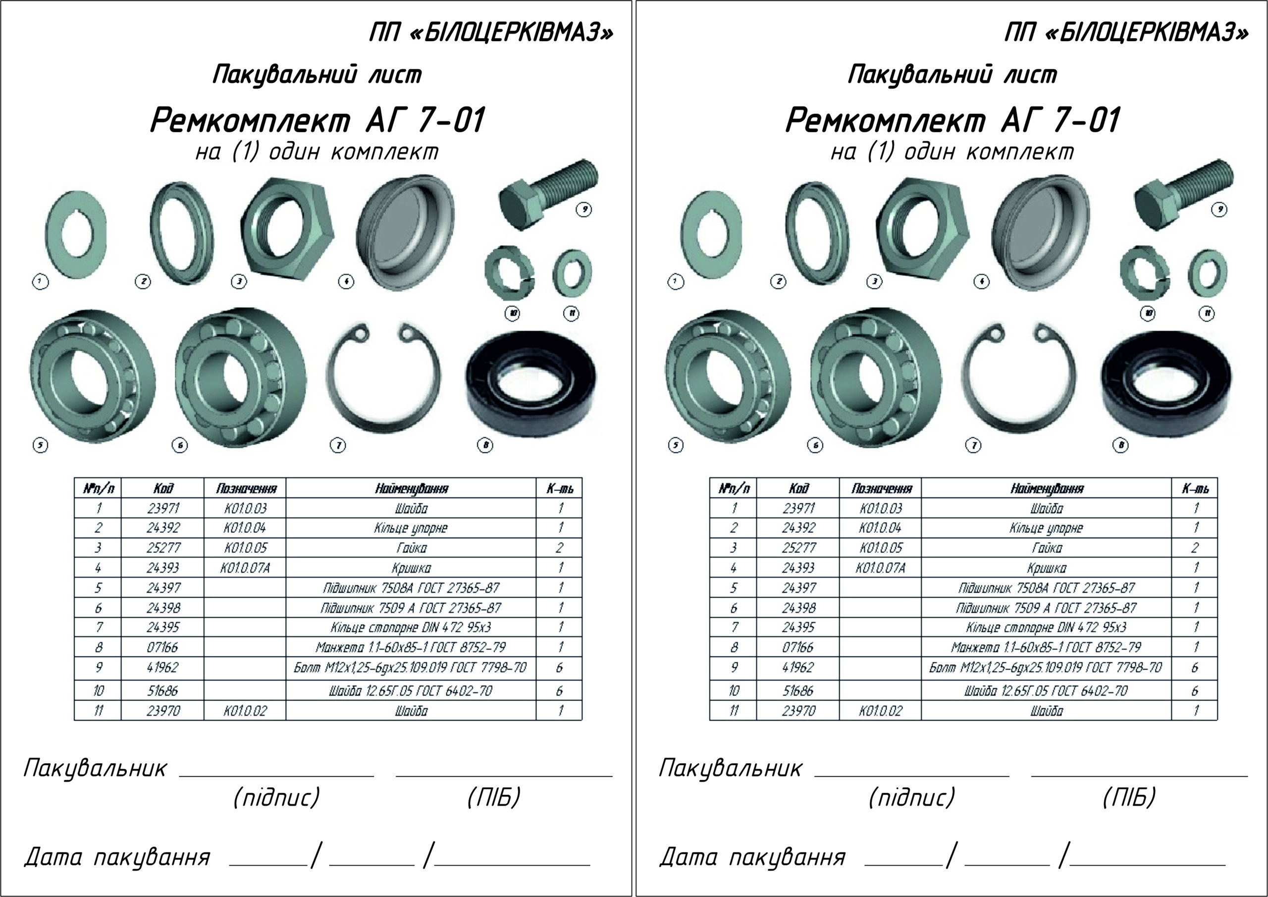 Універсальність: Комплект повністю сумісний зі стійками АГ та УД модифікації “А”, що спрощує логістику при обслуговуванні змішаного парку техніки.