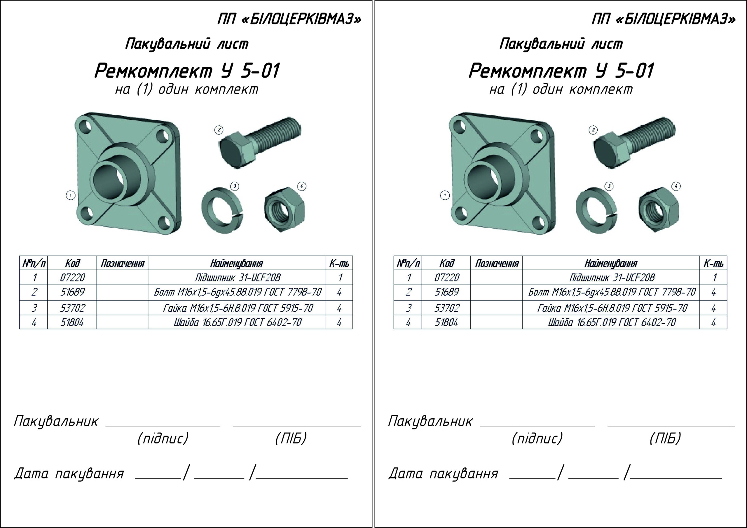 | 1 | 07220 | — | Підшипник 31-UCF208 | 1 |