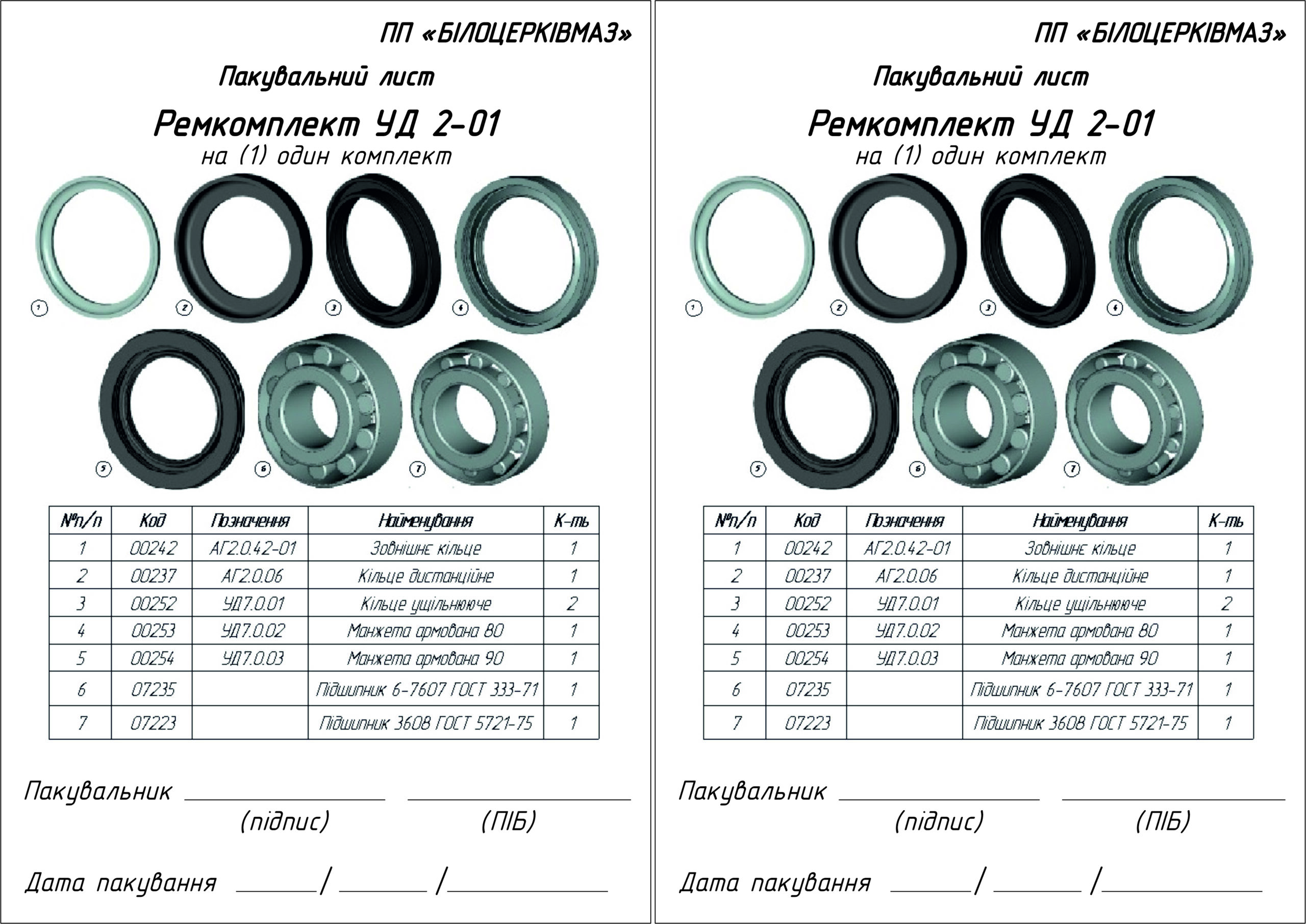 Ремкомплект УД 2-01 (набір ущільнювачів з підшипниками на стійку АГ 7.0.00Б) — це спеціалізований комплект, призначений для повного відновлення працездатності стійки агрегату АГ. Він забезпечує правильне ущільнення вузлів, плавну роботу підшипників та надійний захист механізмів від зносу та забруднень.